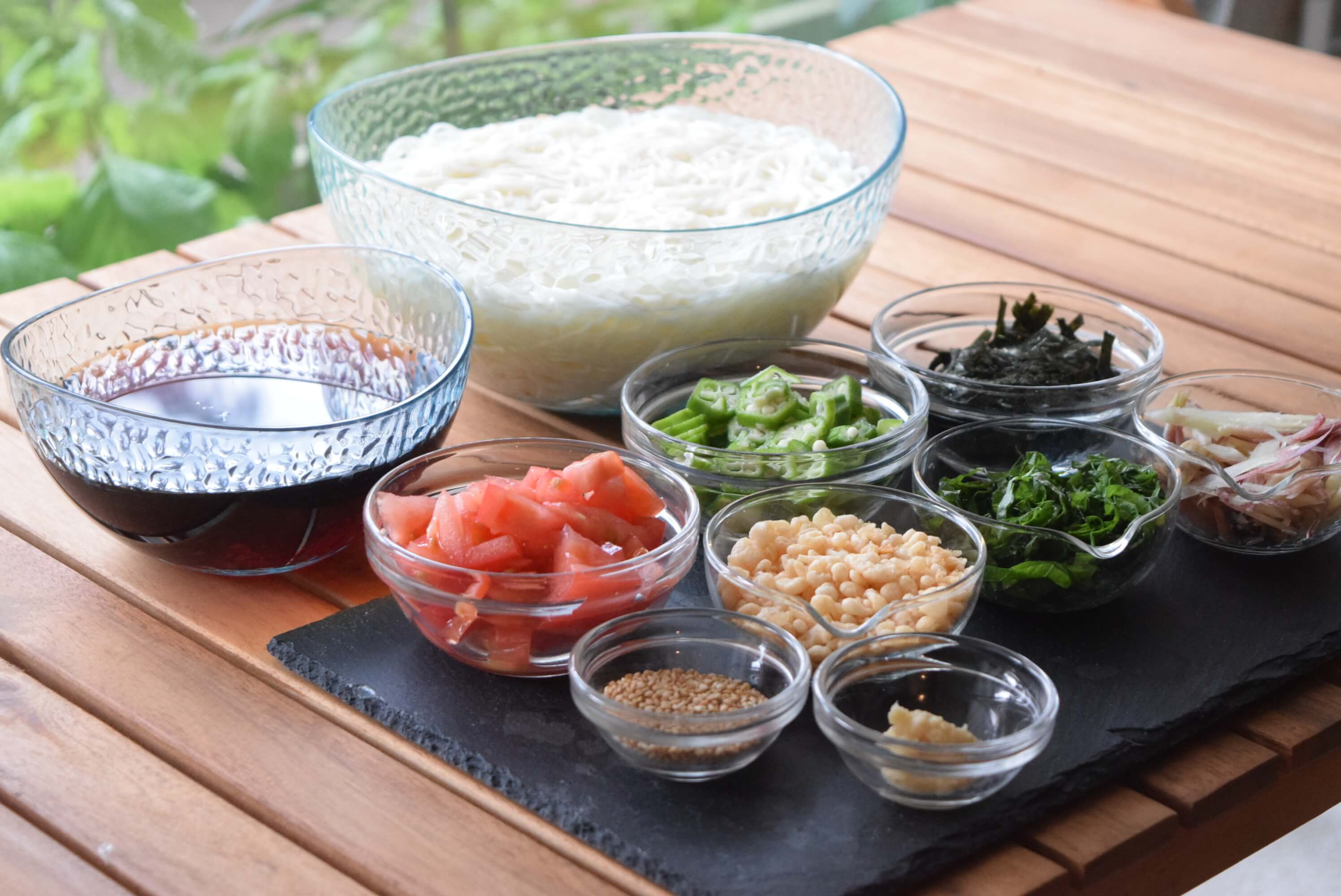 夏の定番そうめんも、我が家だけのおいしい食べ方があれば、楽しいそうめんパーティーに。トマトやオクラ、大葉にミョウガ、あげ玉やのりなど具材はさまざま。