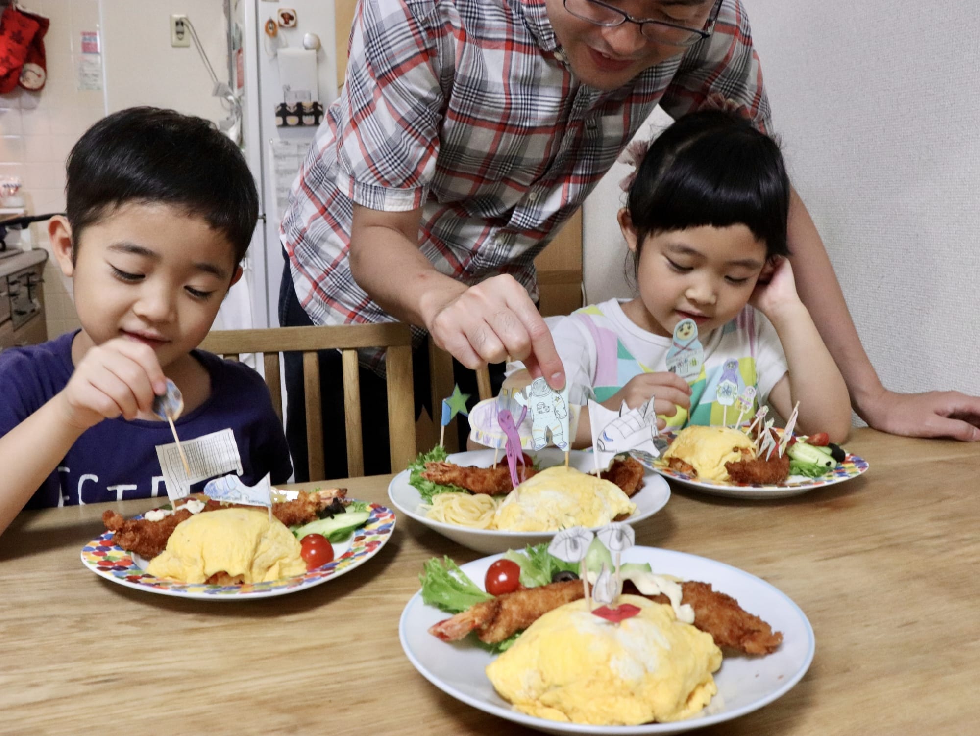 料理は食材・味付け・つくり方・アレンジ、どれをとってもクリエイティブ。盛り付けや飾りつけもその一つです。そんな楽しさを体験できるキッチンアクションです。子どもと、オリジナルなピックを作って、仕上がりに乗せると、あっという間にお子さまランチのようなワクワクプレートに。