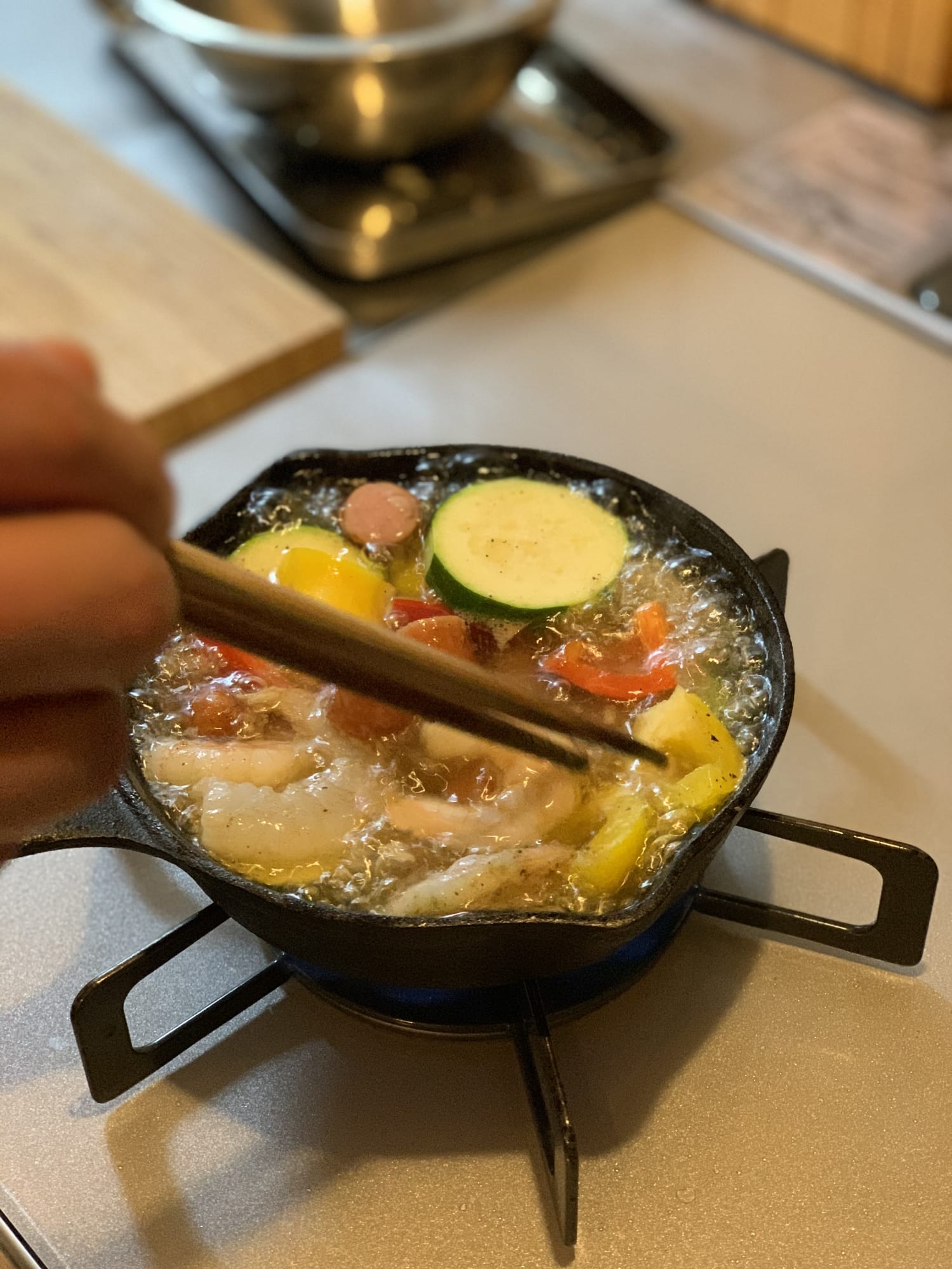 • スーパーで、アヒージョに入れたい具を子どもと一緒に選んでもいいですね。