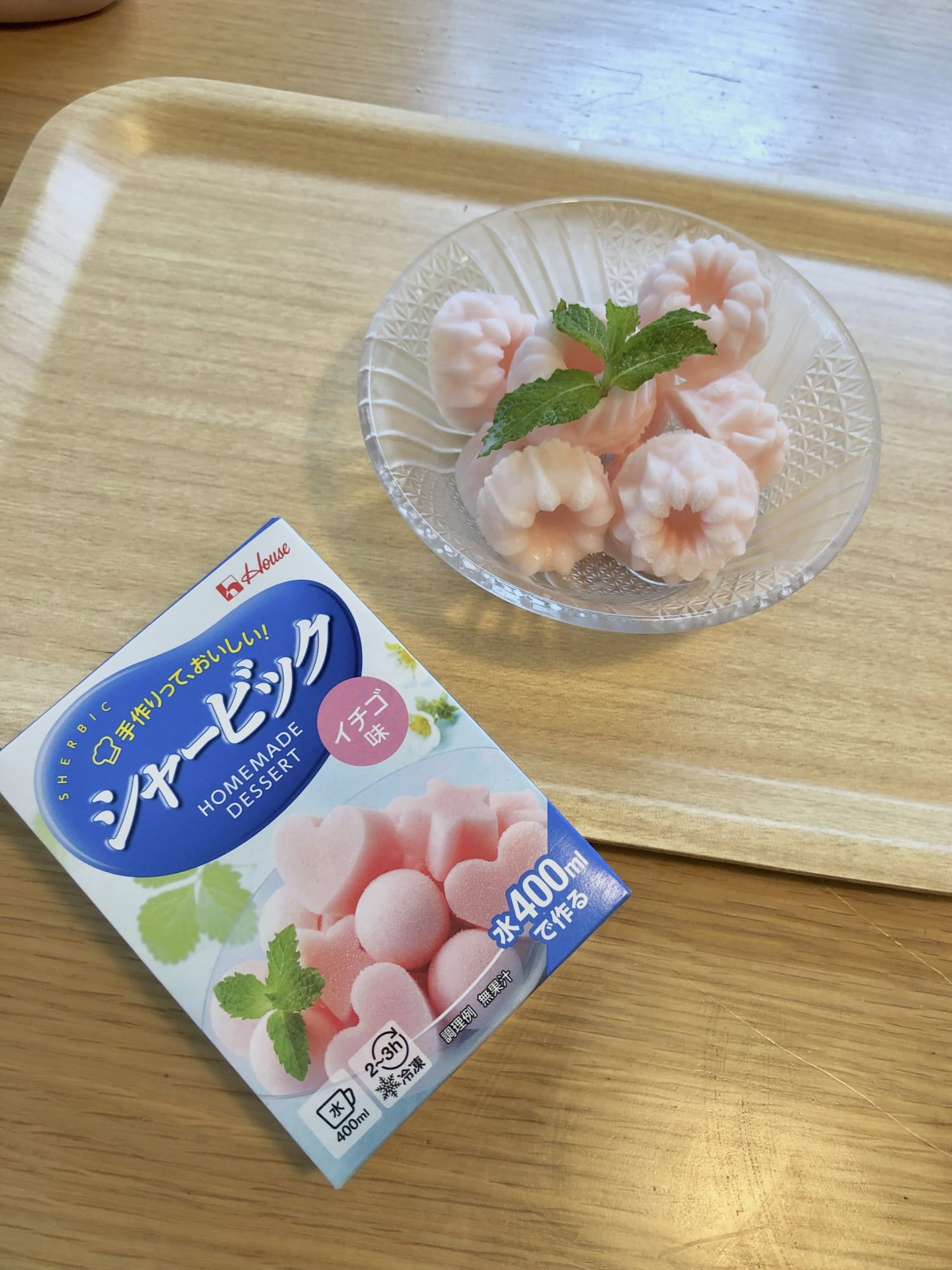 お手伝いポイント 水や牛乳を量って、シャービックと混ぜます